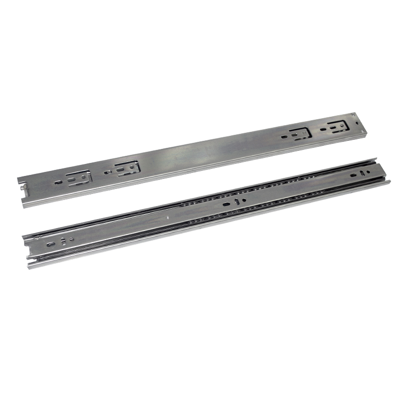 Riel de extensión total con cierre lento, diseñado para garantizar un deslizamiento suave y silencioso. Fabricado en acero con recubrimiento galvanizado para mayor resistencia y durabilidad. Soporta hasta 30 kg por par y cuenta con una vida útil de 15.000 ciclos de uso. Ideal para cajones en escritorios, muebles comerciales, residenciales y gabinetes de cocina donde se requiere una apertura completa con cierre amortiguado. Disponible en longitudes de 300, 350, 400, 450 y 500 mm.