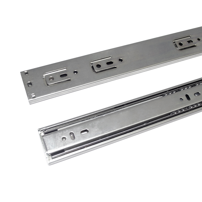 Fabricados en Acero. 15.000 ciclos dRiel de extensión total con cierre lento, diseñado para garantizar un deslizamiento suave y silencioso. Fabricado en acero con recubrimiento galvanizado para mayor resistencia y durabilidad. Soporta hasta 30 kg por par y cuenta con una vida útil de 15.000 ciclos de uso. Ideal para cajones en escritorios, muebles comerciales, residenciales y gabinetes de cocina donde se requiere una apertura completa con cierre amortiguado. Disponible en longitudes de 300, 350, 400, 450 y 500 mm.
