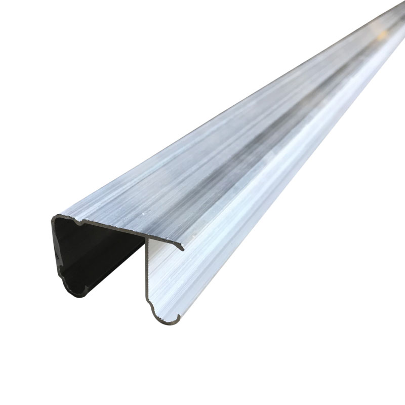 Riel para puertas colgantes traslapado, fabricado en aluminio de alta resistencia con capacidad de carga de hasta 30 kg por pestaña. Diseñado para puertas de división de ambientes y puertas corredizas o de closet, permitiendo un deslizamiento suave y seguro. Acabado en aluminio crudo para mayor durabilidad, permitiendo reducir el ruido al rodar las puertas. Disponible en longitudes de 2 y 3 metros.