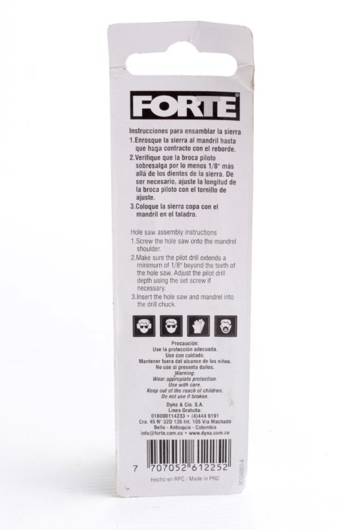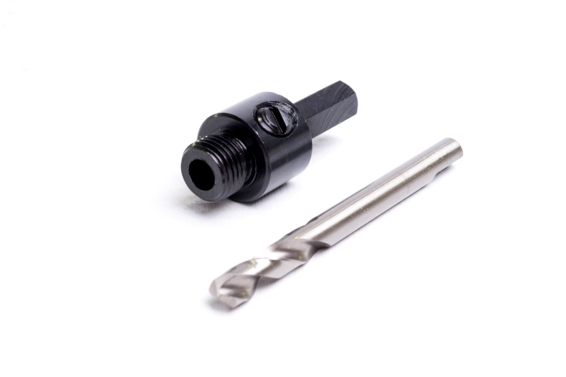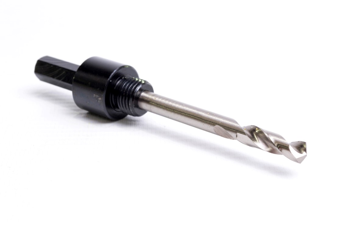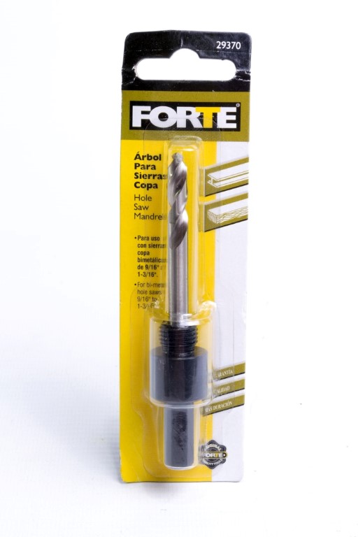 Incluye Broca piloto. Encastre hexagonal. Se ajusta a tamaños de Sierra copa desde 9/16" (14.3mm) hasta 1.3/16" (30mm). Diametro de eje 3/8". Sin pasadores.