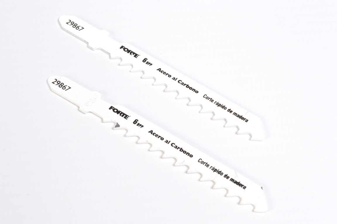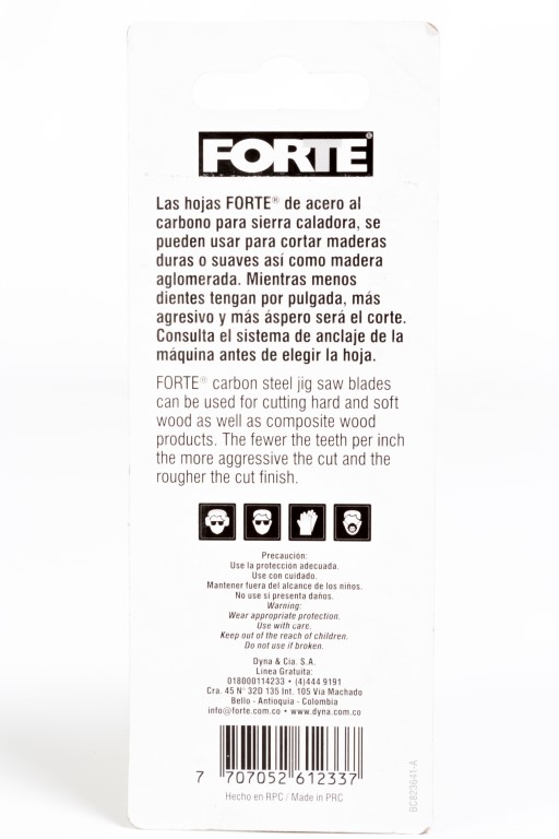 Las hojas FORTE® de acero al carbono para sierra caladora, se pueden usar para cortar maderas duras o suaves así como madera aglomerada. Mientras menos dientes tengan por pulgada, más agresivo y más áspero será el corte. Consulta el sistema de Anclaje de la maquina antes de elegir la hoja.