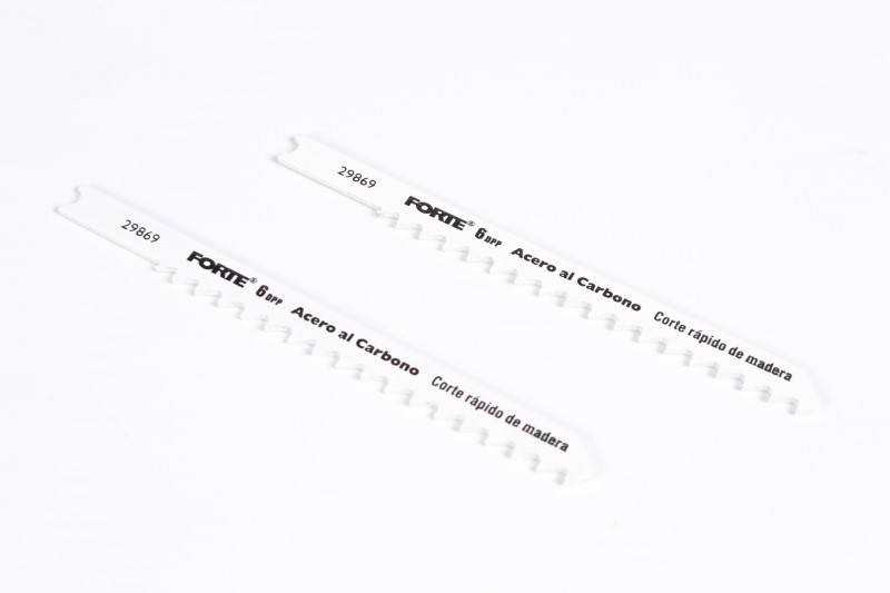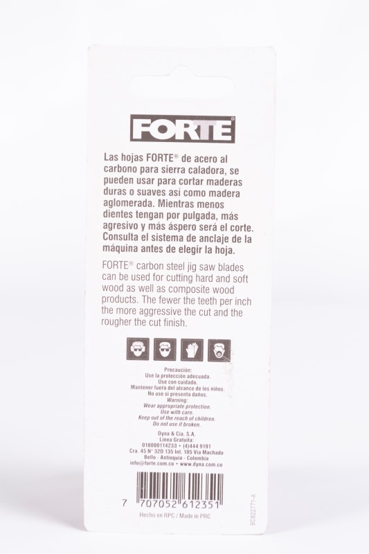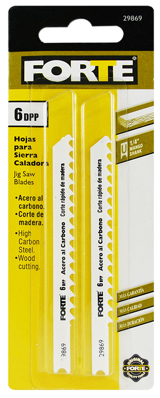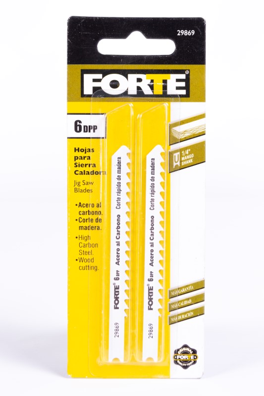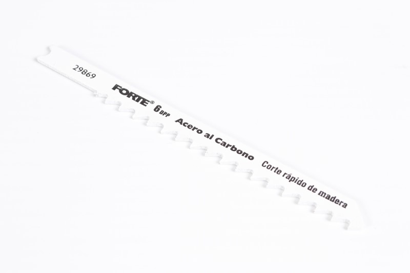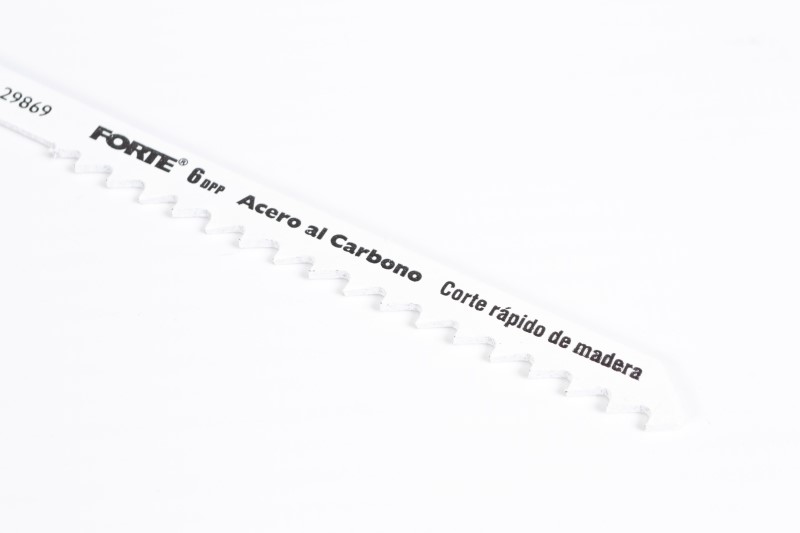 Las hojas FORTE® de acero al carbono para sierra caladora, se pueden usar para cortar maderas duras o suaves así como madera aglomerada. Mientras menos dientes tengan por pulgada, más agresivo y más áspero será el corte. Consulta el sistema de Anclaje de la maquina antes de elegir la hoja.