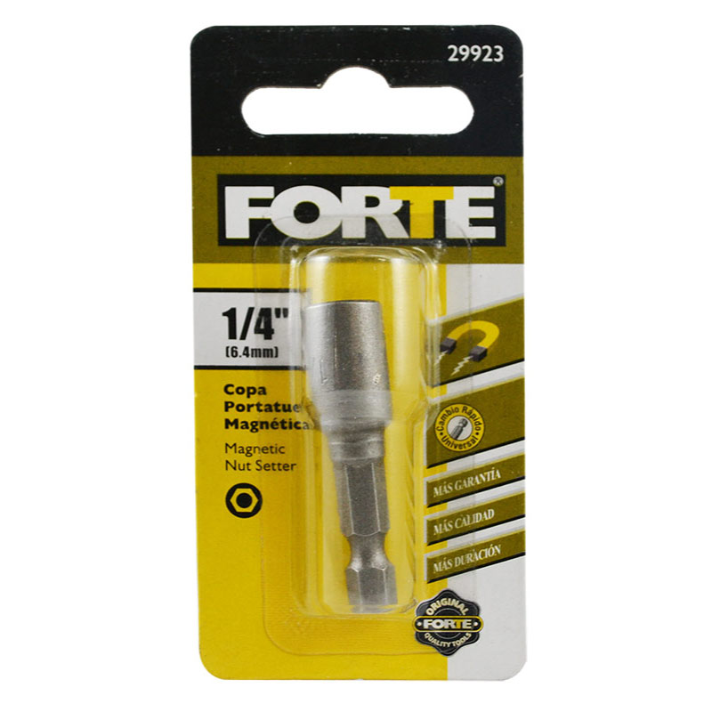 Práctico Porta tuercas magnético que facilita el atornillado de tornillos y tuercas con cabeza hexagonal, fijándolos mientas comienza el trabajo. Posee mango universal de 1/4" adecuado para los sistemas de cambio rápido y para los taladros y atornilladores eléctricos.