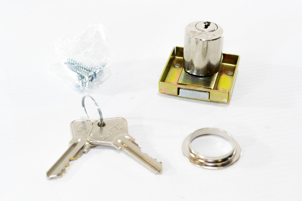 Cerradura 113/30 - 35 - 40, con diseño de sobreponer para muebles de madera principalmente. Acabado niquelado y cobre. Longitud de 30 mm. Cilindro en latón macizo de cuatro pines, porta cilindro niquelado o latón puro, pintado con laca transparente brillante y cuerpo en cold rolled con recubrimiento galvánico, homologación de llaves