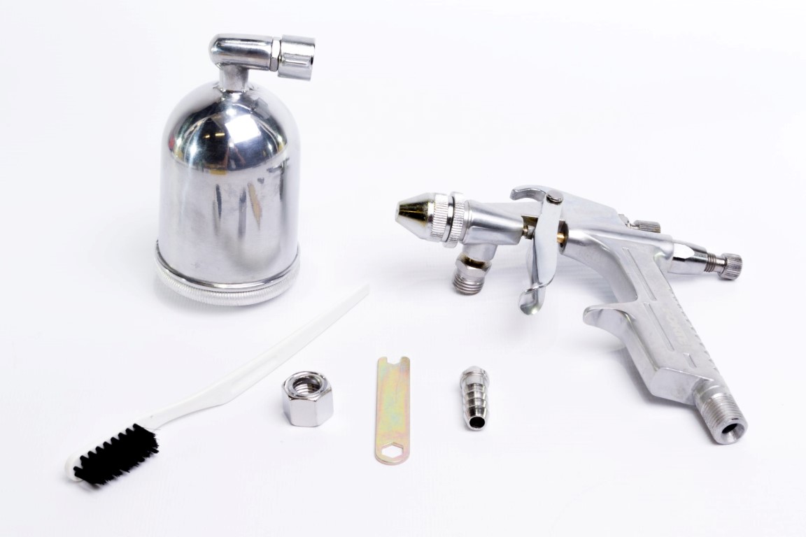 Capacidad vaso: 200 ml. Vaso graduable a diferentes ángulos. Bajo consumo de aire (CFM = pies cubicos por minuto). Aerografo de chorro. No apto para uso con quimicos altamente corrosivos.