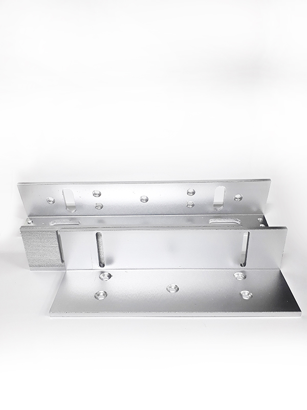 Soporte en aluminio para electroimán. Contine accesorios para instalación y hoja técnica. Disponible para electroimanes de 400 y 600 libras. Permite la instalación flotante de la placa móvil del electroiman en la puerta, el electroimán irá instalado en un soporte en el marco de la puerta.