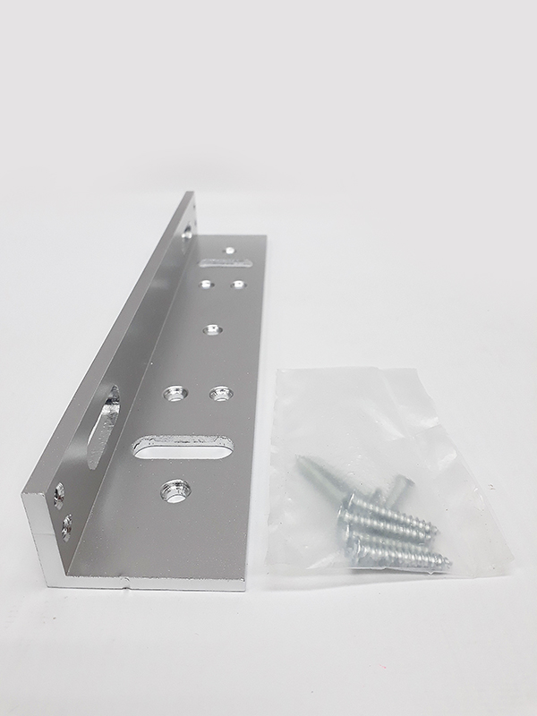 Soporte en aluminio para electroimán. Contine accesorios para instalación y hoja técnica. Disponible para electroimanes de 400 y 600 libras. Permite la instalación flotante del electroiman en el marco de la puerta. La placa móvil irá sujeta en forma directa sobre el cuerpo de la puerta.