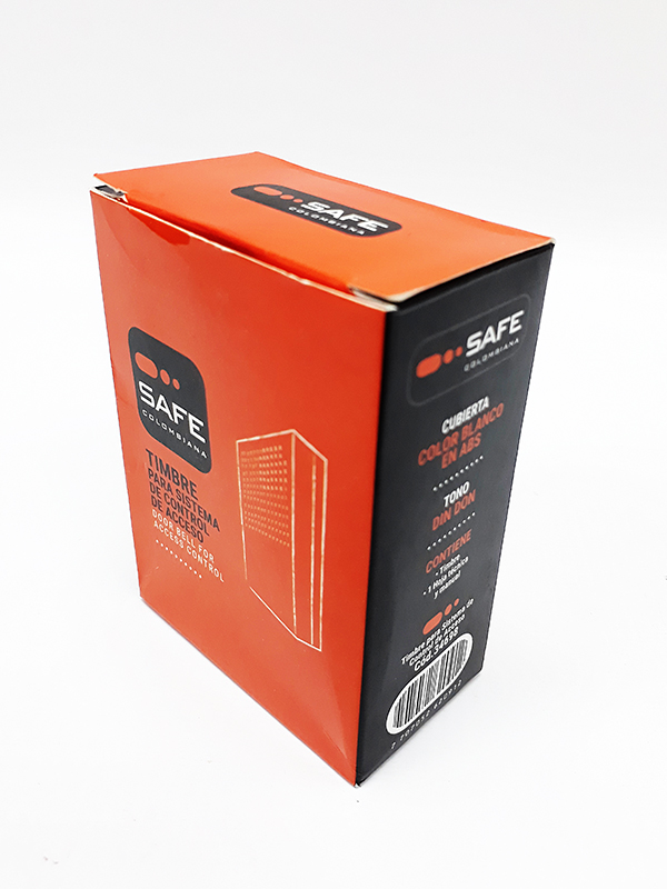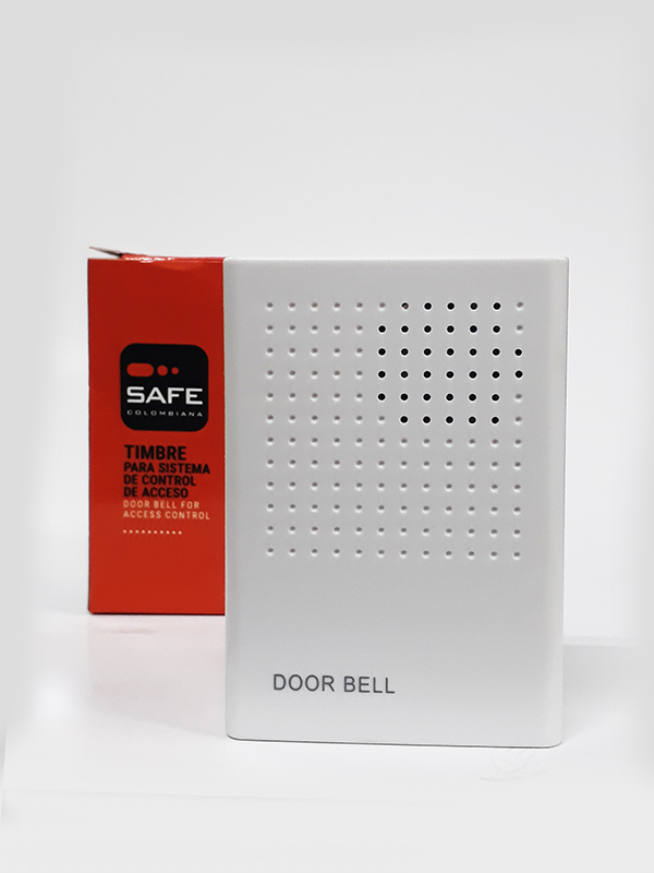 Timbre para conexión a fuente de poder de 12V DC. Utiliza el pulsador del teclado del sistema de control de acceso o cualquier otro interruptor que supla las necesidades de conectividad y corriente. Cubierta plástica en ABS.