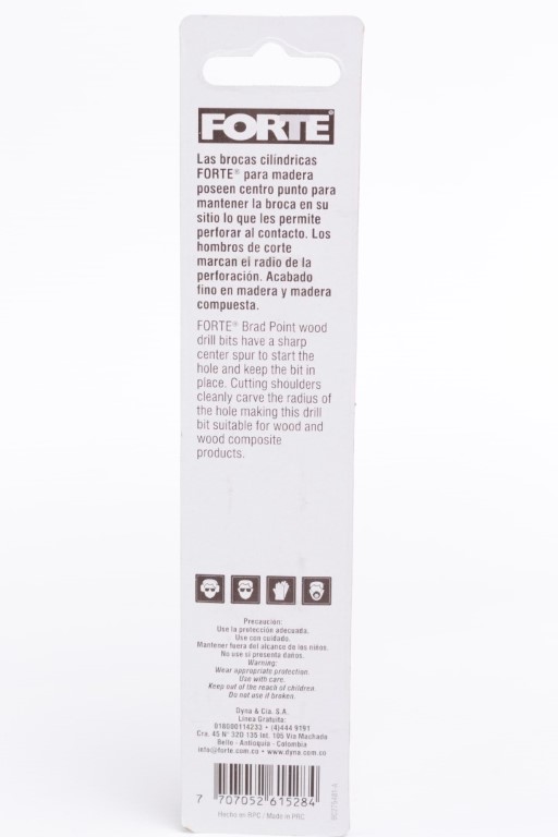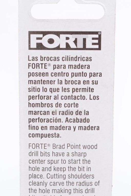 Las brocas cilíndricas FORTE® para madera poseen punta de centrado para mantener la broca en su sitio y que les permite perforar al contacto. Los hombros de corte marcan el radio de la perforación realizando perforaciones finas en madera y madera compuesta.