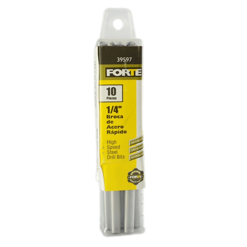 Las Nuevas Brocas FORTE® de Acero rápido son una gran alternativa a las marcas tradicionales para hobbistas, profesionales y contratistas, debido a su excelente relación de calidad y precio. Fabricadas con acero rápido de alta calidad, tienen unidades rendimiento ideal sobre Aceros suaves, Laminas, Hierro fundido, bronce, aluminio, plástico, madera y PVC. Adicional, los Empaques plásticos contienen menos cantidad de brocas por estuche que otras marcas.
