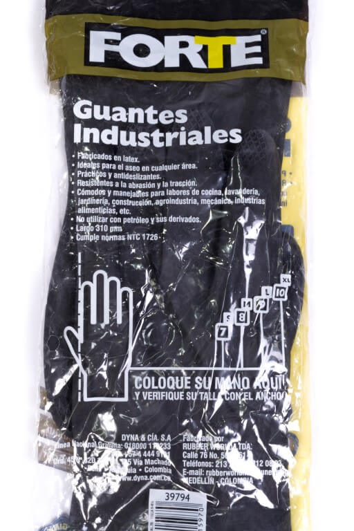 Fabricada en Latex. Superficie exterio negra. En la palma de la mano y dedos presenta un labrado que le genera propiedades antideslizantes. Su espesor elevado genera resistencia a la abrasión y la tracción. Es ideal para las labores de trabajo pesado en todo tipo de industrias donde es importante la durabilidad del producto en el tiempo, y donde se requiere un alto nivel de aislamiento térmico junto con condiciones más exigentes de tensión. Largo 310mm x Ancho 110+/-10mm cumpliendo normas NTC 1726. 100 Gr.