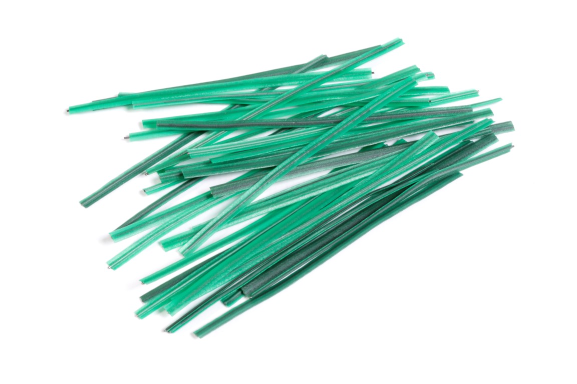 Alambre de acero bajo en carbono, con recubrimiento externo de pvc, bolsa de 100 unidades, disponible en color amarillo, azul, verde, rojo, gris,alta flexibilidad. Producto utilizado en las panificadoras, en las floristerias, campos agricolas y en el hogar como producto para asegurar o amarrar. Grado de toxicidad ninguna conocida.