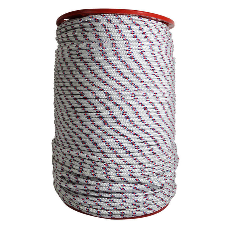 Carreta en forma cilíndrica con cuerda de nylon trenzada en su exterior de color blanca con pintas, poseen un alma de filamentos sin procesar,ademas de poliester y polipropileno texturizado. Dimensiones del producto: Carreta por 250 mts calibre 4 Ancho:15 cms, Largo:22cms. Producto utilizado en: ganaderia, agropecuarios,carpas,amarres,camiones,mallas y artesanias.