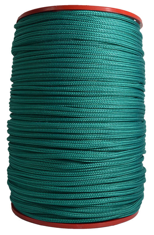Carreta en forma cilíndrica con cuerda de nylon trenzada en su exterior, disponible en colores: verde, rojo, negro. Poseen un alma de filamentos sin procesar,ademas de poliester y polipropileno texturizado. Dimensiones del producto: Carreta por 250 mts calibre 4 Ancho:15, cms, Largo:22cms. Producto utilizado en: ganaderia, agropecuarios,carpas,amarres,camiones,mallas y artesanias.