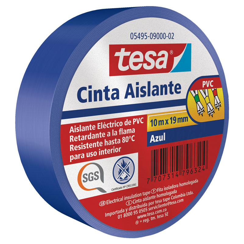 Cinta aislante color azul, de PVC con certificacion RETIE, ideal para pequeños trabajos electricos, resistente al agua, oxidacion rayos UV y frio resistente hasta 80C de excelente capacidad dielectrica.