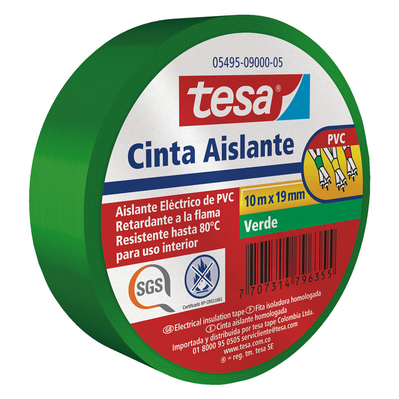 Cinta aislante color verde, de PVC con certificacion RETIE, ideal para pequeños trabajos electricos, resistente al agua, oxidacion rayos UV y frio resistente hasta 80C de excelente capacidad dielectrica.