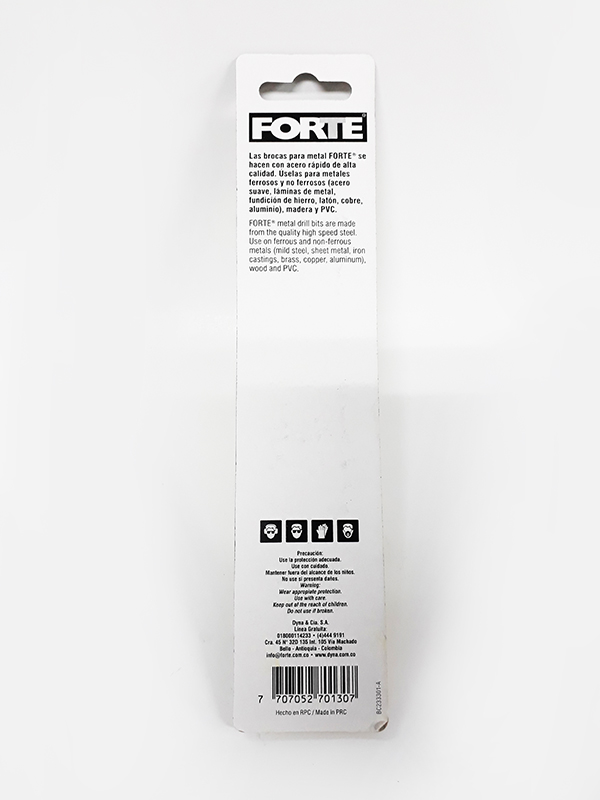 Las Nuevas Brocas FORTE® de Acero rápido son una gran alternativa a las marcas tradicionales para hobbistas, profesionales y contratistas, debido a su excelente relación de calidad y precio. Fabricadas con acero rápido de alta calidad, tienen unidades rendimiento ideal sobre Aceros suaves, Laminas, Hierro fundido, bronce, aluminio, plástico, madera y PVC. Adicional, los Empaques plásticos contienen menos cantidad de brocas por estuche que otras marcas.