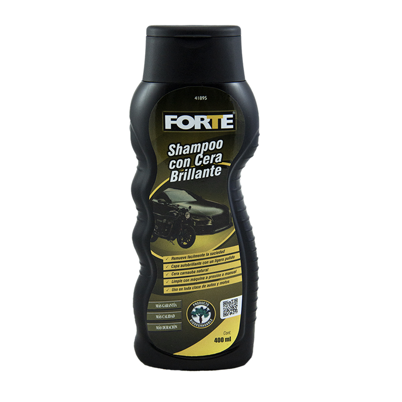 Shampoo para vehículo formulado con agentes tensoactivos y ceras naturales que permiten una fácil remoción de la suciedad, dejando una capa auto brillante luego de un ligero pulido, gracias a la acción de la cera carnauba. Para limpieza de toda clase de autos y motos. Puede usarse con máquina a presión o manual. Presentación de 400 ML. Ref IMPD405 de Forte"