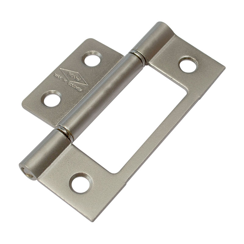 Fabricado en lámina de acero Cold Rolled calibre 18, acabado niquel satin, para usar en carpintería madera, metálica y aluminio, este acabado tiene propiedades que alargan la vida del herraje protegiéndola de la oxidación en especial en zonas altamente salínicas.