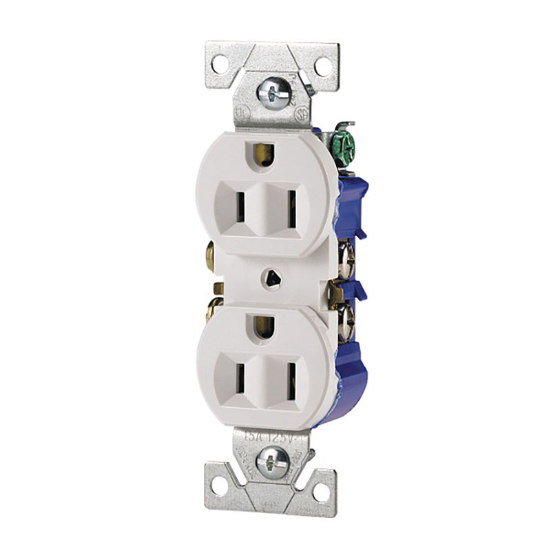 Tomacorriente doble americano para atornillar tipo Levinton de 15 amperios, funciona a 125 voltios. Ideal para instalaciones internas y conexión de aparatos eléctricos. erminación alambre lateral y alambre de empuje 15 A 125 V. material termoplástico. Color blanco, sin placa. Referencia270w-02 marca Eaton de AVE.