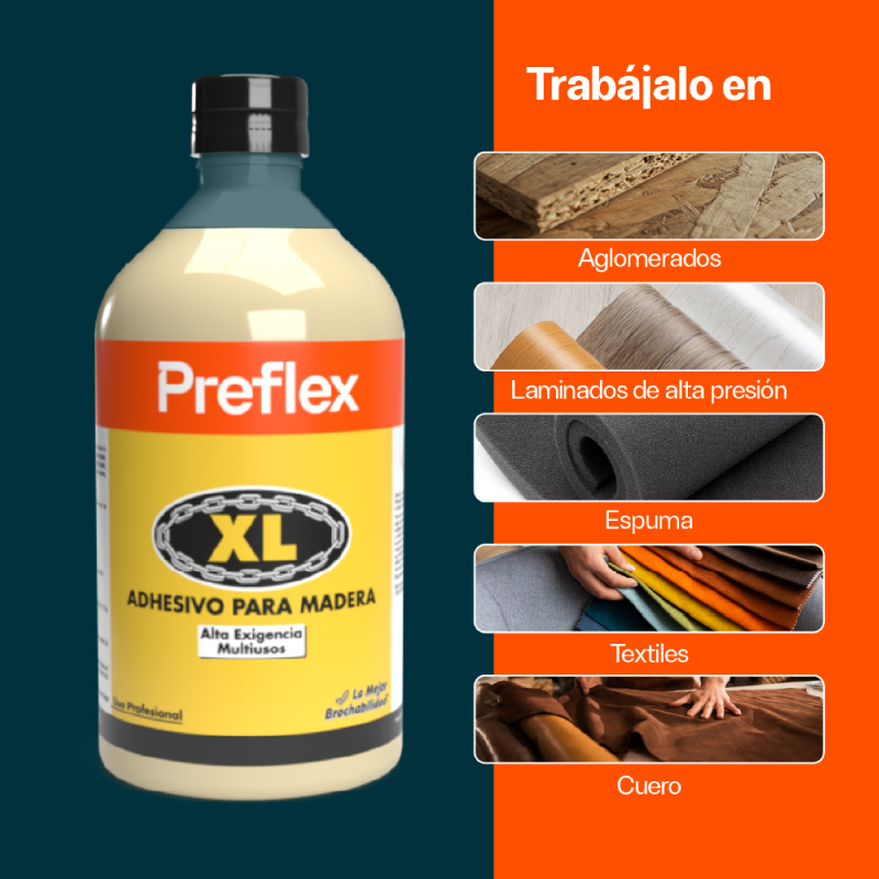 Adhesivo de contacto de alto desempeño, formulado con base en cauchos de cloropreno y resinas fenólicas de excelente calidad. Tiene un apropiado contenido de sólidos y iscosidad, amplio tiempo abierto, y excelente brochabilidad. Es de color amarillo ocre y presenta olor característico a solventes orgánicos. Se puede aplicar con brocha, llana, espátula, cepillo o mecánicamente.