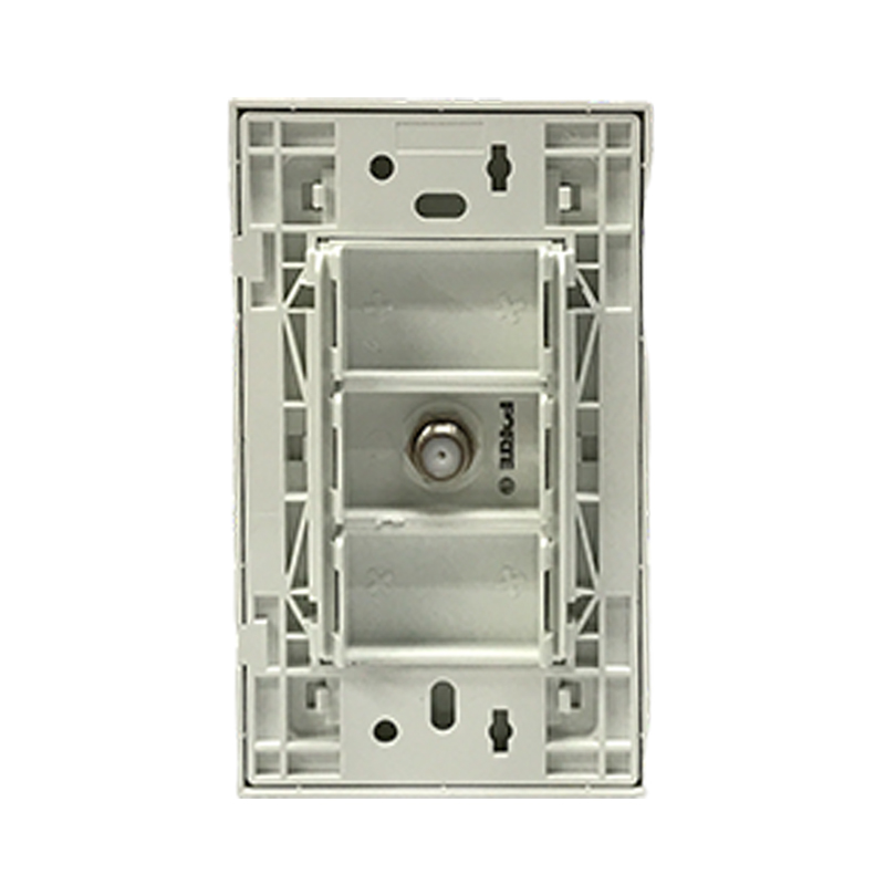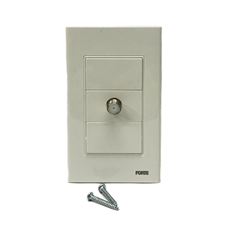 Toma con conector hembra para cable coaxial para incrustar en la pared, ideal para la conexión de señal del cable del televisor. Fabricado en policarbonato, contactos punto de plata y herrajes en cobre. Funciona con cable coaxial tipo RG59 y RG6. Impedancia característica de 75 Ohms. Dimensiones: 118mm x 73mm. Cumple con normas internacionales y con RETIE. Serie A10 de FORTE Referencia A1071.