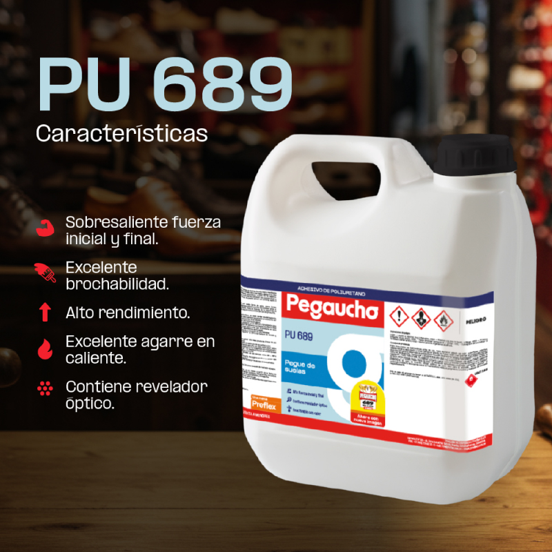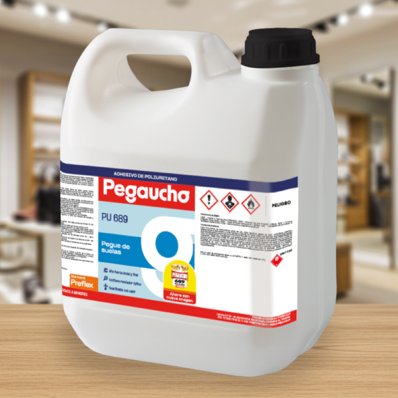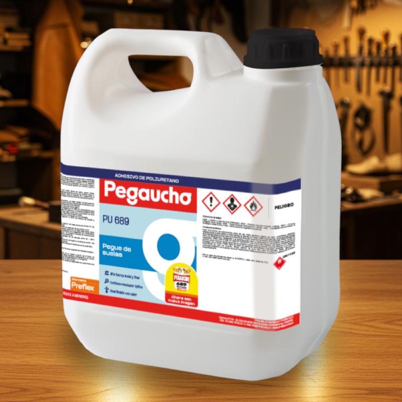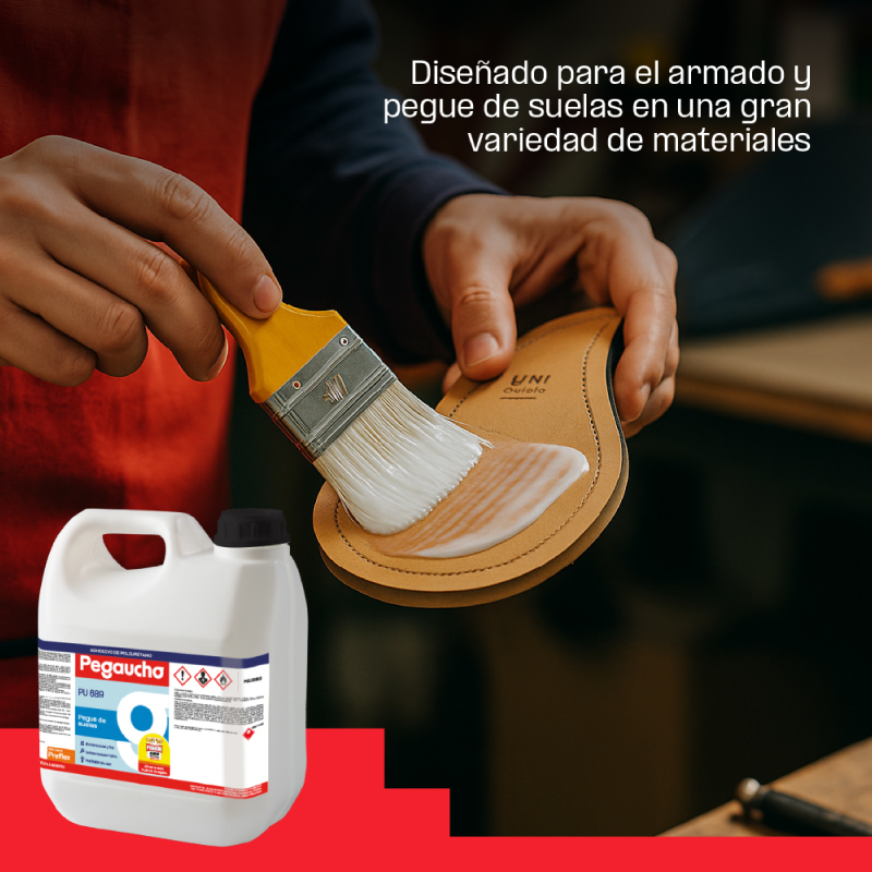Para pegue de suelas de PVC, PVC expanso, poliuretano, crupón, TR, TR expanso, neolite, EVA, caucho vulcanizado, crepé a cueros semigrasos, secos, lonas, piezas metálicas, telas vinílicas o de poliuretano.
