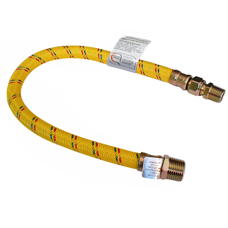 Conectores para Gas Natural y GLP para la facil instalación de los Gasodomesticos como: estufas, calentadores, etc. Manguera con recubrimiento tipo trenzado en pvc autoextinguible. Certificada bajo la NTC 3564