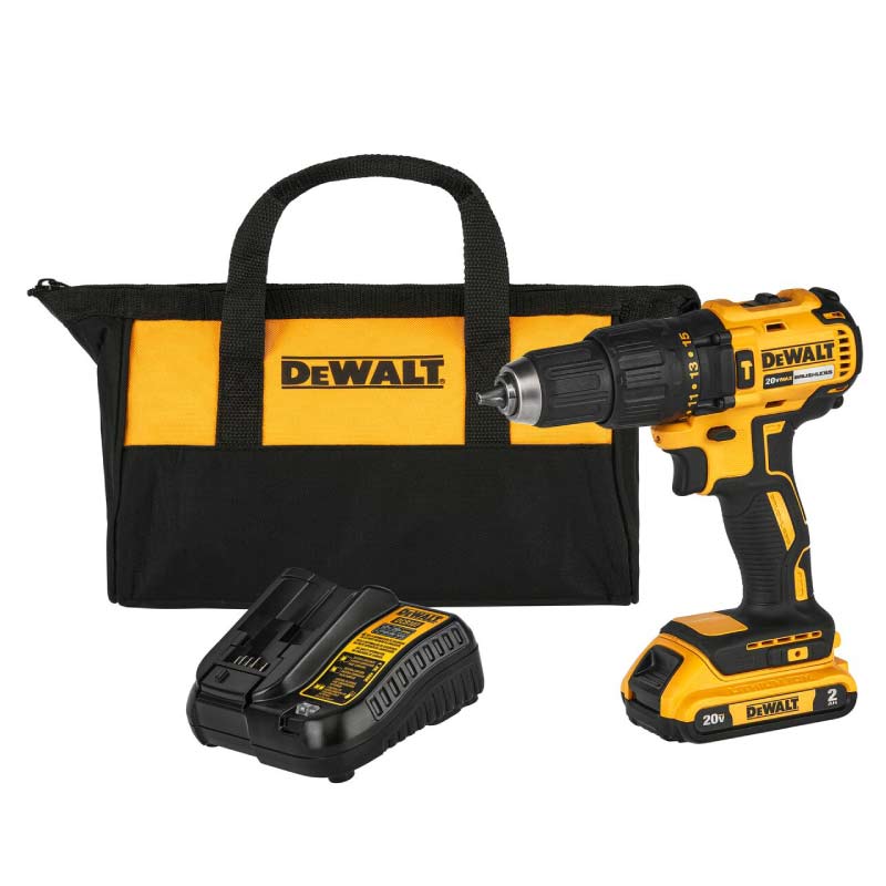 Taladro Percutor Inalámbrico Dewalt 20V sin escobillas y con más torque. Mandril de 1/2". Mayor torque (65Nm). Doble velocidad (0-500 / 0-1750 RPM). Impactos por minuto: 0-8500 / 0-29750 IPM. Incluye 1 bat (2Ah) + 1 cargador rápido y maleta de lona.