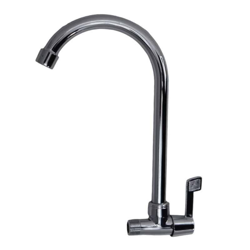 Griferia Sencilla Lavaplatos para instalar en Pared de Cocina con cuello fijo, mando en Palanca, cuerpo y mando elaborado en Aleación de Zinc recubierto en Zinc.