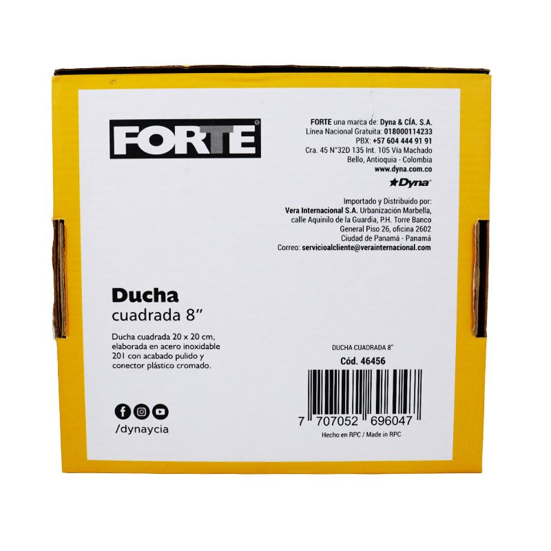 Ducha 8x8" (20x20cm) Acero Inox Forte