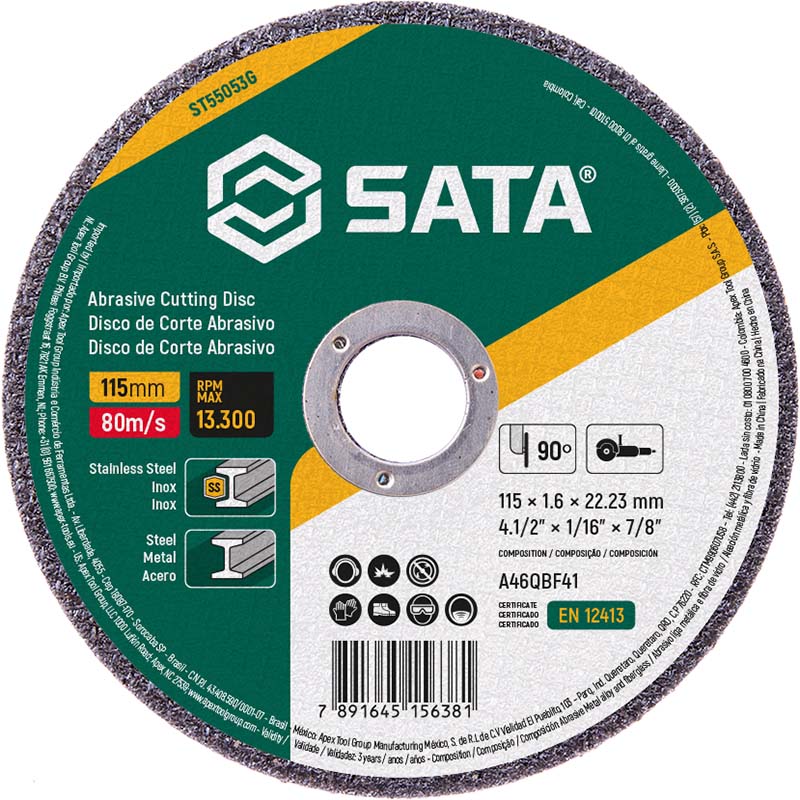 Los discos de corte SATA® ofrecen un alto rendimiento, calidad y durabilidad en el proceso de corte. Además, son adecuados para varios tipos de aplicaciones en acero y acero inoxidable. Producido en granos abrasivos de óxido de aluminio de alta calidad que garantizan mayor velocidad y durabilidad. Acabado perfecto, asegurando trabajos cortos sin necesidad de limpieza y desbarbado. Recomendado para el corte de acero o acero inoxidable, lo que permite trabajar simultáneamente con diferentes materiales. Cumple con la normas técnicas europeas de seguridad y calidad: EN 12413.