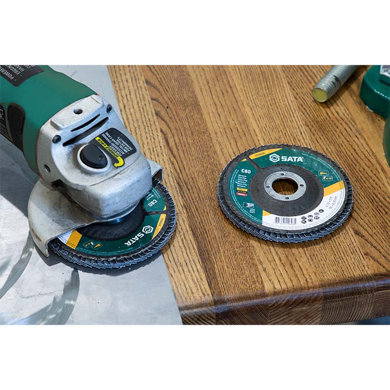 Los discos flap SATA® cuentan con granos abrasivos de alto rendimiento que aseguran un mejor acabado, durabilidad y eficiencia en el proceso de esmerilado. Además, están disponibles en 4 tipos de grano para cada fase de desbaste y/o acabado. Los discos SATA® son ideales para superficies planas y curvas, aumentando la eliminación de material y optimizando el tiempo de trabajo. Utilizado para refinamiento y limpieza de aceros. Tiene un formato T 29, proporcionando un mayor contacto con el material, mejorando la ejecución en superficies planas e irregulares.