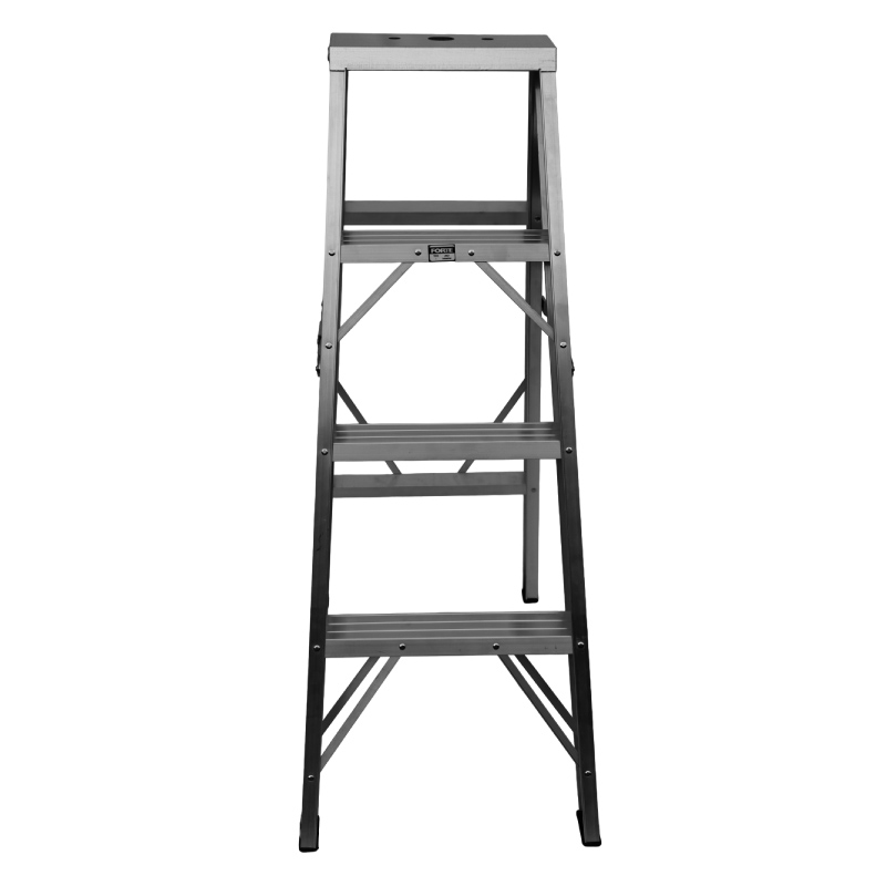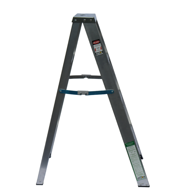 Escalera tijera en aluminio, tipo I uso industrial, 4 pasos, capacidad de carga 137 kg, se fabrican bajo la norma ANSI 14.2. Aluminio estructural de alta resistencia.