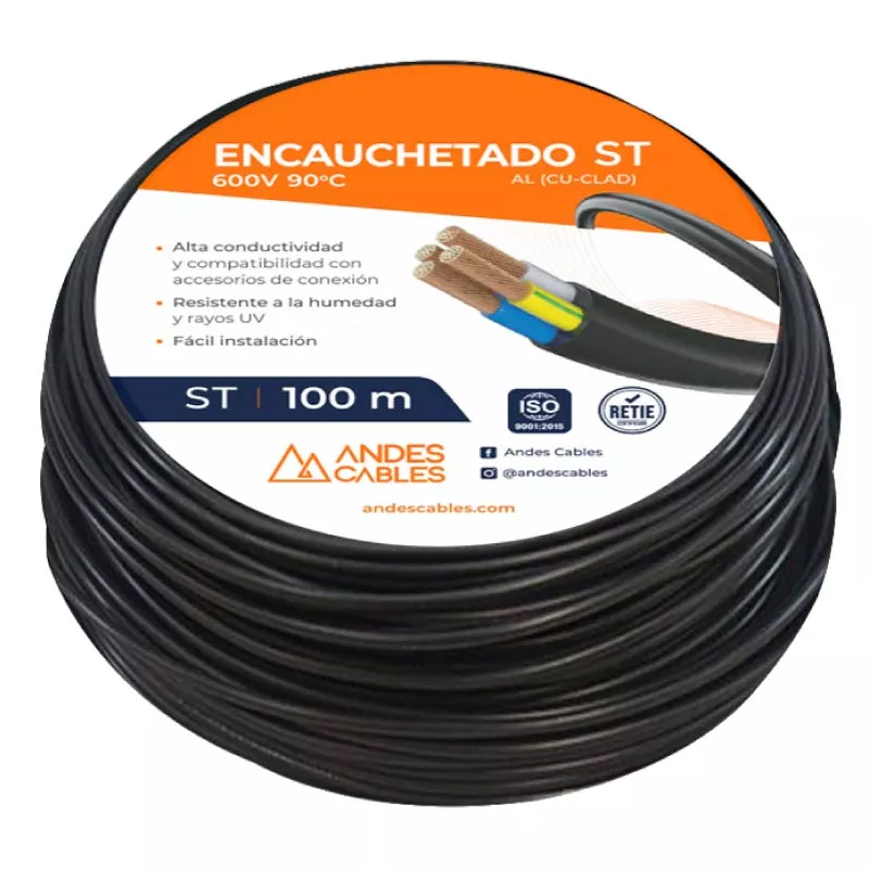 Diseñados para ofrecer máxima durabilidad y rendimiento, nuestros cables multiconductores cuentan con 2 a 4 conductores, protegidos por una chaqueta externa resistente que soporta el maltrato y prolonga su vida útil. Voltaje de operación: hasta 600 V Temperatura máxima: 90 °C Aislamiento autextinguible: mayor seguridacontra incendios Presentaciones: Rollos de 50 m y 100 m, bobinas de 350m y 500 m Cumple la norma RETIE 2024 Más robusto que un cable dúplex, soporta condiciones exigentes.Mayor capacidad de transporte de corriente sin sobrecalentarse.Protección superior gracias a su cubierta negra resistente. Usos ideales: extensiones eléctricas, tableros de distribución, iluminación, motores, generadores y aplicaciones industriales donde la resistencia y confiabilidad son clave