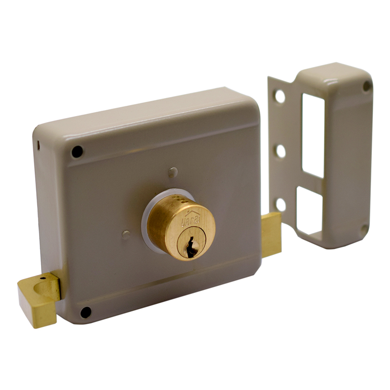 Cerradura sobreponer lado Derecho VF Ultra. Para puertas de entrada en material de madera o metal. Cilindro interior y exterior en latón macizo, Cabeza en Latón y Gancho en latón, macho de seguridad en Latón que se acciona en 2 pasos, 3 llaves de latón, lamina de la caja de 1,5 mm. Nota: Para Determinar el Lado de la Puerta, Deberás Pararte Frente al Exterior. Si las Bisagras Están en el Lado Derecho, La Puerta es Derecha y si las Bisagras Están Instaladas del Lado izquierdo, La Puerta es Izquierda. Centro de instalación 50 mm