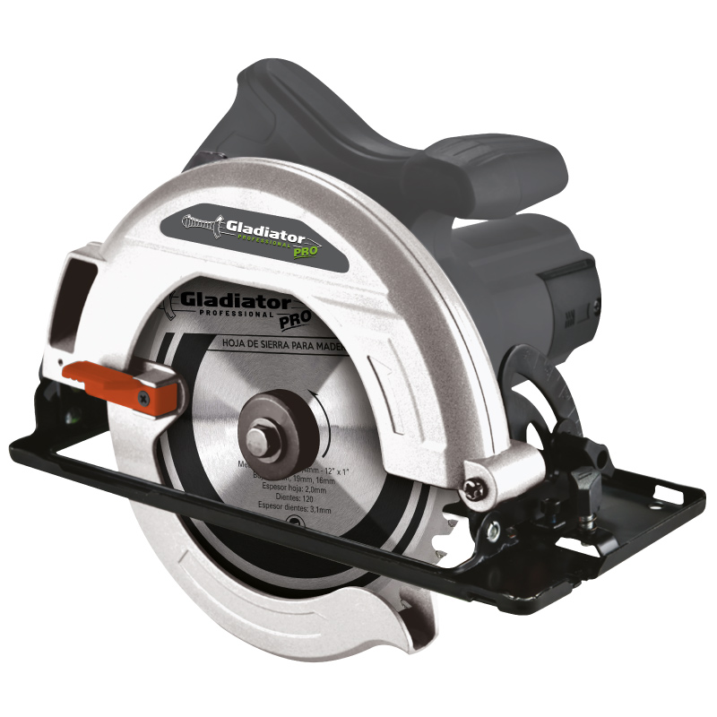 Sierra Circular para trabajos profesionales. Poderoso motor de 1.400W. Disco 7.1/4" (185mm). Velocidad 5300 RPM. Capacidad de corte a 90° 65 mm y a 45° 45 mm. Incluye: Llave hexagonal, disco de 24 dientes y guia.