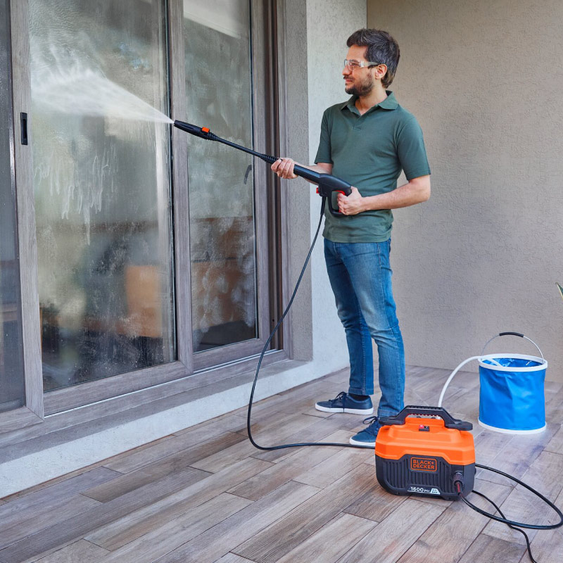 La hidrolavadora cuenta con bomba de aluminio no corrosiva. Conexión de manguera pivotante a 360° con liberación. Filtro de agua con conector rápido para proteger la unidad de las impurezas del agua. El potente motor genera hasta 1600 PSI (110 Bar) y 7,2 L/min. Apagado automático protege al usuario y preserva la vida útil de la máquina. Botella de espuma incluida para una limpieza más cómoda y profunda. Incluye: Unidad de lavado de alta presión, manguera de presión de 5 m, pistola de gatillo, lanza con boquilla ajustable, boquilla turbo, filtro de agua, conexión rápida, botella de espuma, pasador de limpieza de la boquilla y sujetador del cable