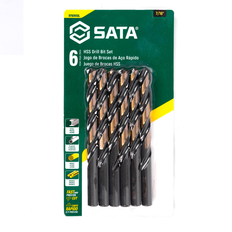 Las Brocas SATA® están fabricadas en acero rápido High Speed Steel (HSS) M2, aleación de Tungsteno (7%) , Molibdeno (5%) que brinda alta resistencia al desgaste, un filo más duradero para mayor velocidad de penetración, desempeño superior a altas temperaturas, brindándole altos niveles de dureza y un rendimiento óptimo para todo tipo de trabajo. También viene con espiral de curvatura suave para fácil y rápida remoción de residuos, eje endurecido para mayor resistencia a la rotura y con un ángulo en punta de 135° dándole mayor precisión en la perforación inicial. Cumple con la norma ANSI B94.1. Largo 14.3 cm