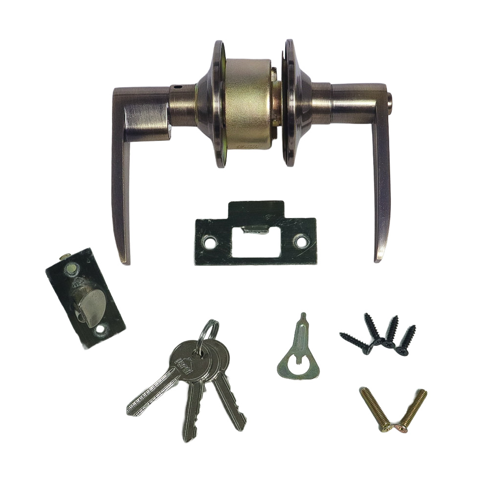 Cerradura Cilíndrica con Manija recta acabado Bronce Antiguo Nuovo, Diseñada para ofrecer seguridad y estilo, esta cerradura cilíndrica cuenta con un elegante acabado en bronce antiguo que aporta un toque clásico y sofisticado. Su cilindro de zamak (Alcoba, entrada) garantiza un mecanismo confiable, mientras que su centro de instalación de 60mm (2-3/8") y roseta de 65mm permiten una fácil instalación en puertas de 35 a 50mm de espesor. Incluye 3 llaves de acero con acabado niquelado. Hasta 85000 mil ciclos, empaque caja