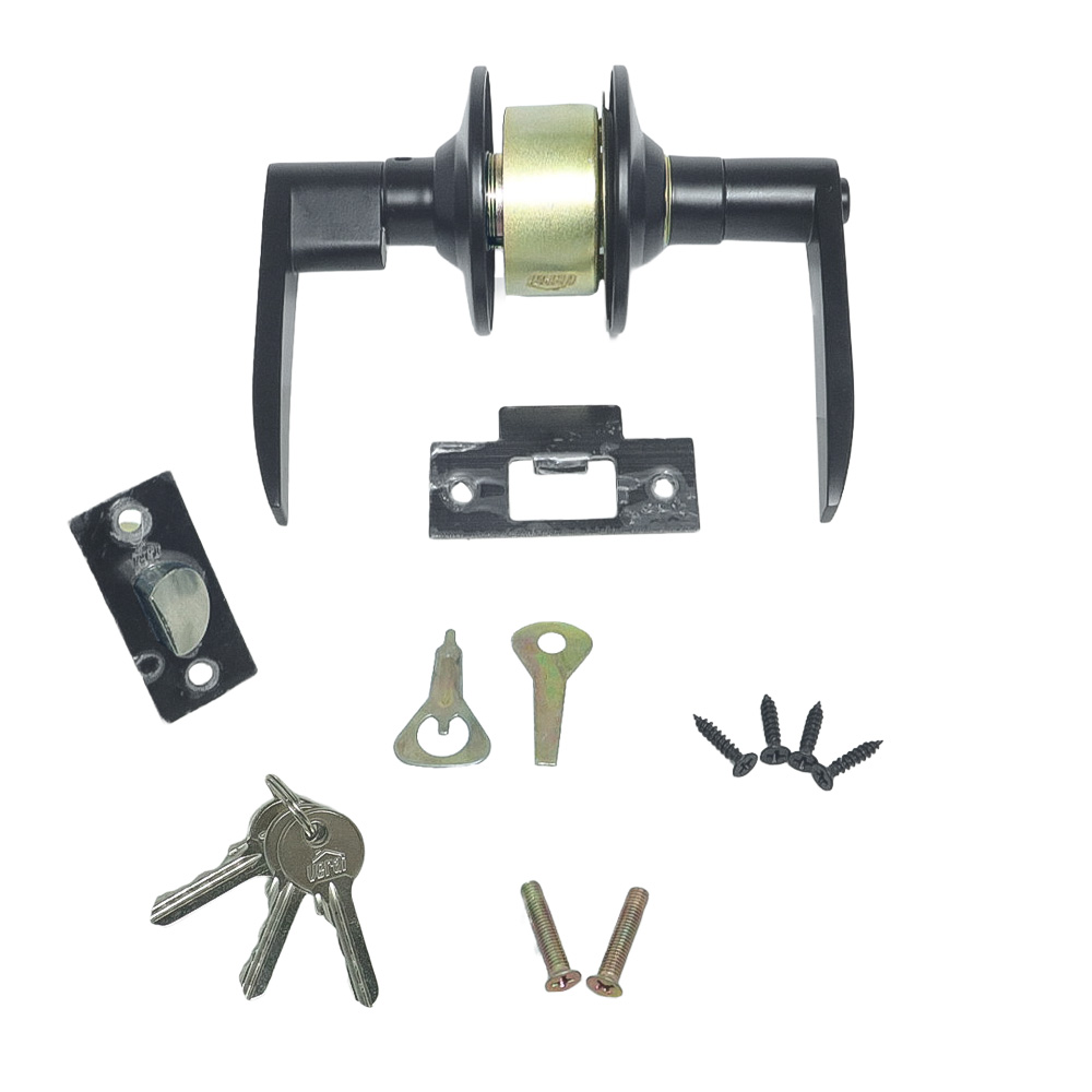 Cerradura Cilíndrica con Manija Metálico en Acabado Negro, Diseñada para brindar seguridad y elegancia, esta cerradura cilíndrica cuenta con un elegante acabado en negro, aportando un toque moderno y sofisticado. Su cilindro de zamak, disponible en versiones para alcoba y entrada, garantiza un mecanismo confiable y duradero. Con un centro de instalación de 60mm (2-3/8") y roseta de 65mm, es compatible con puertas de 35 a 50mm de espesor, permitiendo una instalación sencilla. Incluye 3 llaves de acero con acabado niquelado. Hasta 85000 mil ciclos, empaque caja