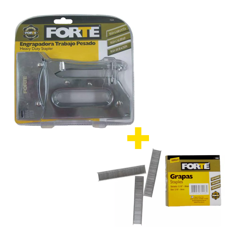 Combo Engrapadora + Grapas trabajo pesado. Engrapadora de trabajo pesado código 7234 (4 Unidades) + Caja de grapas trabajo pesado de 5/16" código 7235 (8 Cajas).