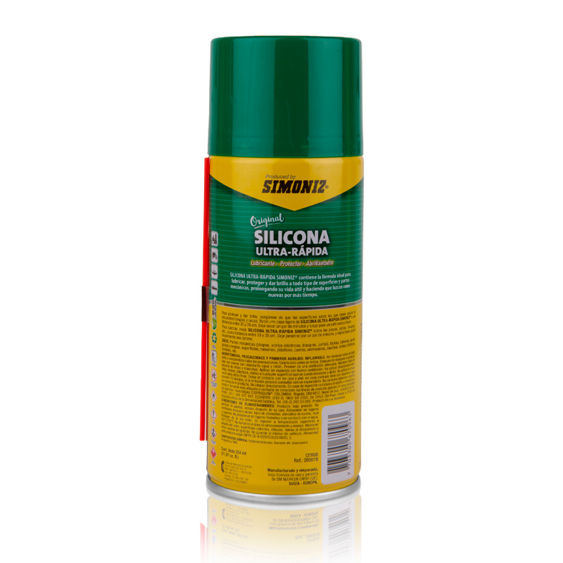 La Silicona Ultrarapida protege contra la humedad y la corrosión, reduce el desgaste de las piezas mecánicas, elimina chillidos causados por la fricción, previene adherencia, lubrica piezas móviles, previene la acumulación de agentes indeseados, da brillo y lustro a las superficies, protege, prolonga la vida de plásticos, cueros, semicuero, cauchos, vinilos, formicas y metales.