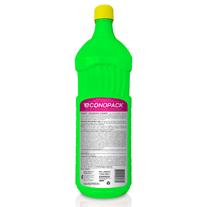 Refrigerante radiador simoniz econopak verde 1 litro Listo para usar. Protección contra el óxido y la corrosión. Mantiene el balance correcto en el sistema de enfriamiento para radiadores