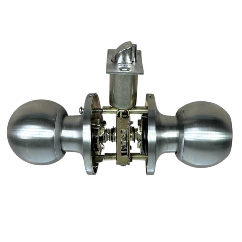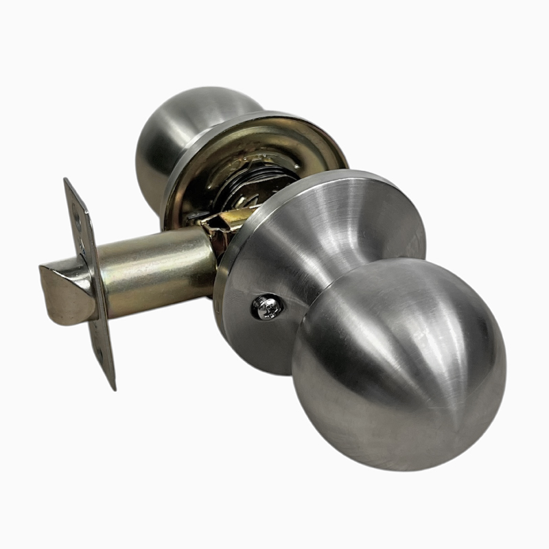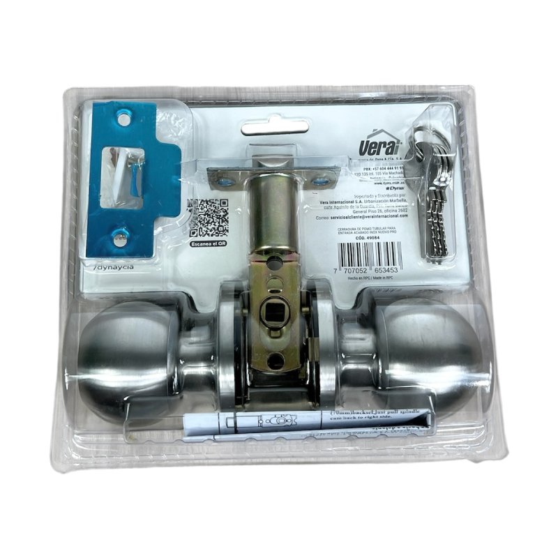 Cerradura de pomo tubular para entrada, llave en el exterior y liso en el interior, pomo en acero SS201 en acabado acero inox, roseta: 65mm en acero SS201 con acabado acero inox, cilindro de latón con cubierta de aluminio, 3 llaves de hierro, pestillo ajustable de 60/ 70mm con acabado en inox y 1.0mm de espesor, recibidor de 1.0mm de espesor y acabado en inox. Cerraduras tubulares son Rápidas y fáciles de instalar gracias a su diseño compacto. Evita que la manija o el pomo se cuelgue debido a su mecanismo en el pestillo
