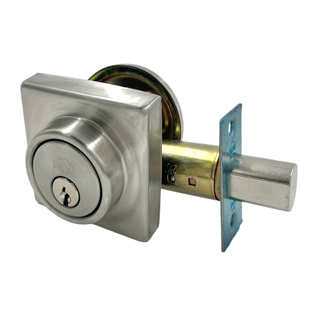 "Cerrojo de uno o dos cilindros fabricado en acero inoxidable SS201, con diseño moderno de líneas cuadradas. Equipado con carcasa de aleación de zinc y tapón de latón macizo para mayor resistencia y durabilidad. Incluye 3 llaves de latón.El pestillo es ajustable con retroceso de 60 mm a 70 mm y cuenta con cara de 1,2 mm de espesor. Apto para puertas de 35 a 45 mm de grosor.Ideal como refuerzo de seguridad para entradas principales, este cerrojo ofrece una solución confiable y estética. Su diseño compacto permite una instalación sencilla y su acabado aporta un toque contemporáneo a la puerta."