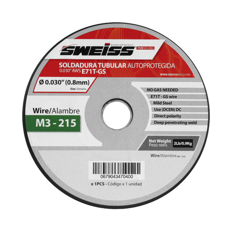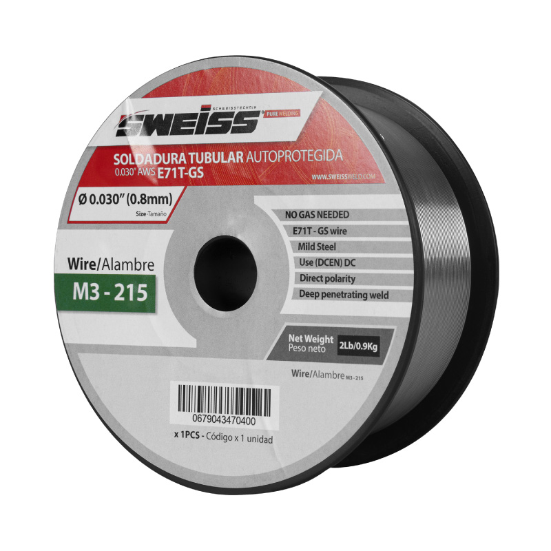 El rollo de soldadura autoprotegido (FCAW) E71T-GS es ideal para soldar acero al carbón. Viene en presentación de 2lb (0.9kg) y en diámetro 0.030” (0.8mm). Dentro de sus ventajas se encuentra que no requiere gas, se puede soldar en todas las posiciones y deja una leve escoria que se puede retirar fácilmente con grata circular o cepillo. Cuenta con una excelente penetración en el material base y una excelente presentación del cordón de soldadura. Además, presenta menor salpicadura y genera menos humo al momento de soldar, haciéndolo más seguro para el soldador.