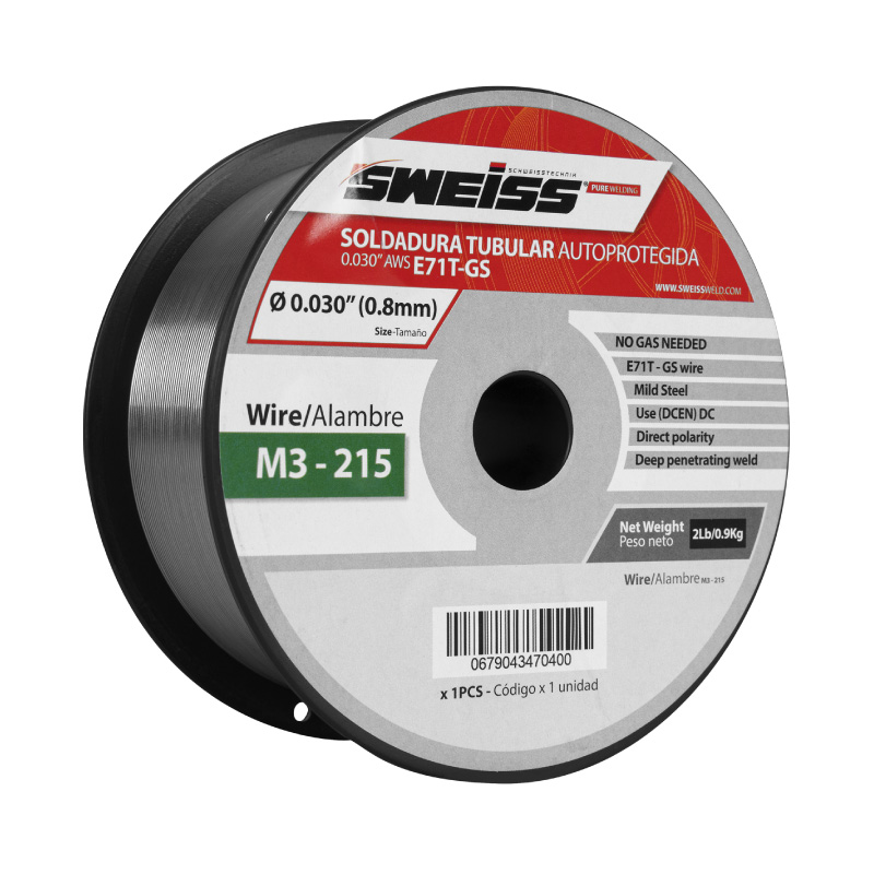 El rollo de soldadura autoprotegido (FCAW) E71T-GS es ideal para soldar acero al carbón. Viene en presentación de 2lb (0.9kg) y en diámetro 0.030” (0.8mm). Dentro de sus ventajas se encuentra que no requiere gas, se puede soldar en todas las posiciones y deja una leve escoria que se puede retirar fácilmente con grata circular o cepillo. Cuenta con una excelente penetración en el material base y una excelente presentación del cordón de soldadura. Además, presenta menor salpicadura y genera menos humo al momento de soldar, haciéndolo más seguro para el soldador.