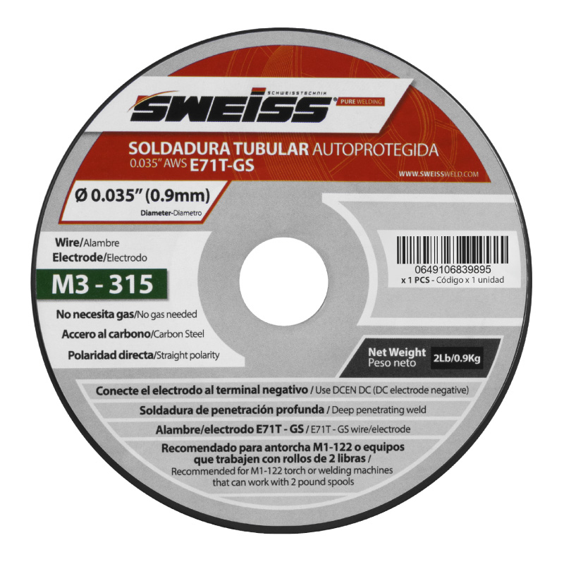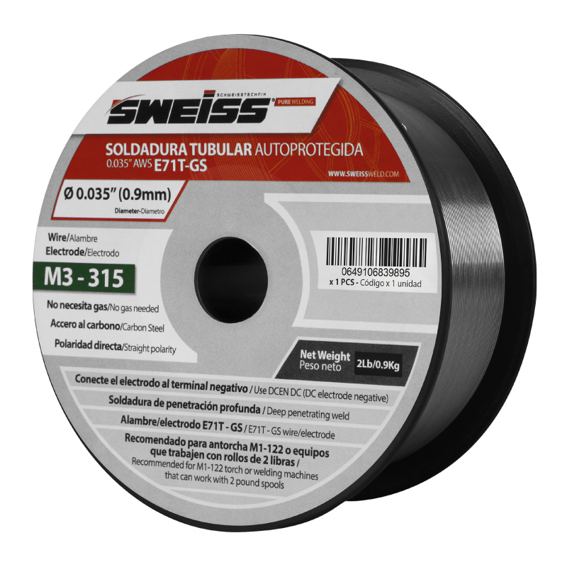El rollo de soldadura autoprotegido (FCAW) E71T-GS es ideal para soldar acero al carbón. Viene en presentación de 2lb (0.9kg) y en diámetro 0.035” (0.9mm). Dentro de sus ventajas se encuentra que no requiere gas, se puede soldar en todas las posiciones y deja una leve escoria que se puede retirar fácilmente con grata circular o cepillo. Cuenta con una excelente penetración en el material base y una excelente presentación del cordón de soldadura. Además, presenta menor salpicadura y genera menos humo al momento de soldar, haciéndolo más seguro para el soldador.