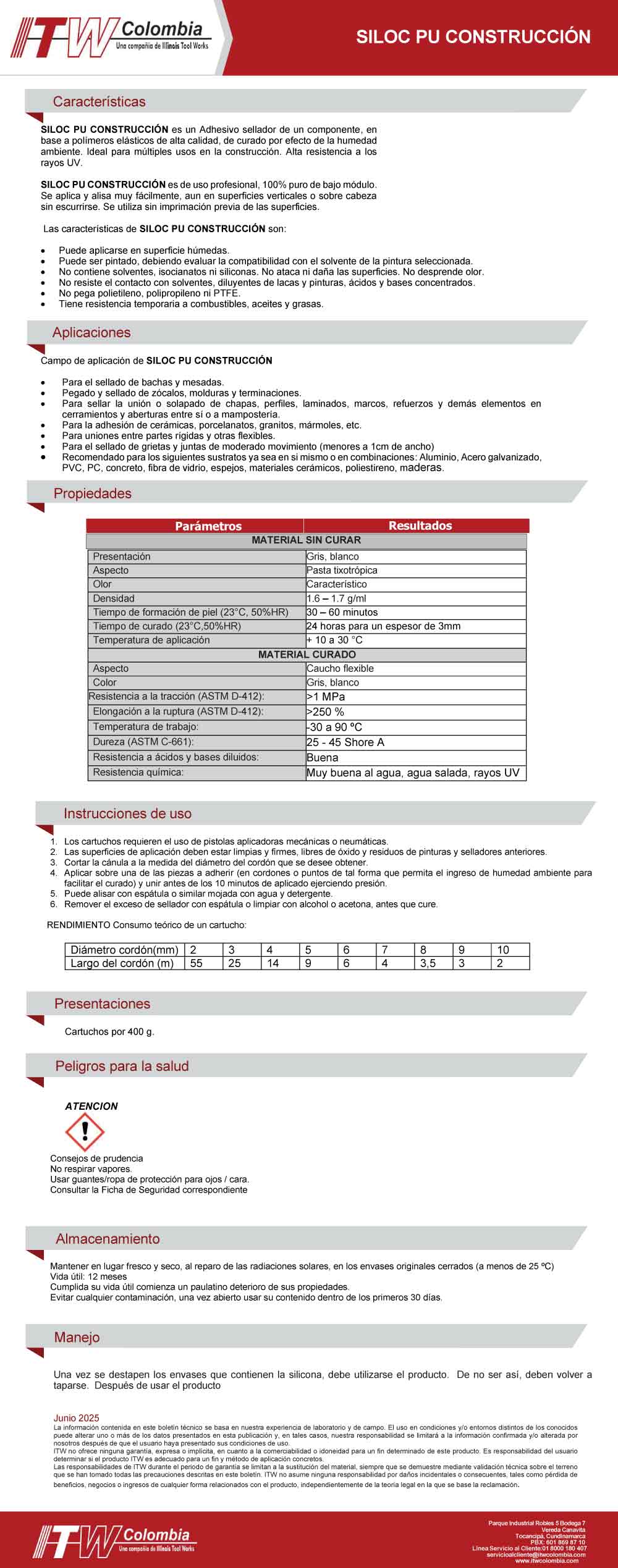 Adhesivo y sellador en base a material polimérico. Adhiere prácticamente todos los materiales sobre sí mismos o en combinación: concreto, vidrio, espejos, madera, metales, acero, acero inoxidable, cerámica, cemento, piedra, PVC, mármoles, granito, policarbonato, superficies esmaltadas y pintadas. Complementa o reemplaza fijaciones mecánicas. No ataca ni mancha los sustratos. No se contrae, es elástico. De muy buena resistencia a la intemperie y a la radiación UV. No escurre, se aplica con facilidad, y es pintable. Sin solventes, sin olor. No se recomienda su uso en superficies que estarán bajo inmersión permanente, ni sobre materiales como PE, PP o PTFE. Usos: sellado de grietas y de abertu